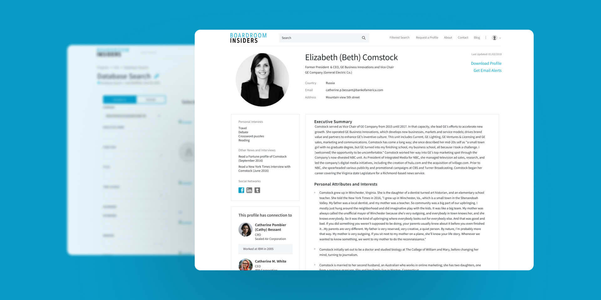 Sharon Gillenwater created Boardroom Insiders to provide that level of business intelligence for C-suite sales, marketing and recruiting. More than a decade later, the company has grown into a rich online database of more than 19,000 executive profiles, as well as a team of editors and researchers across the country.