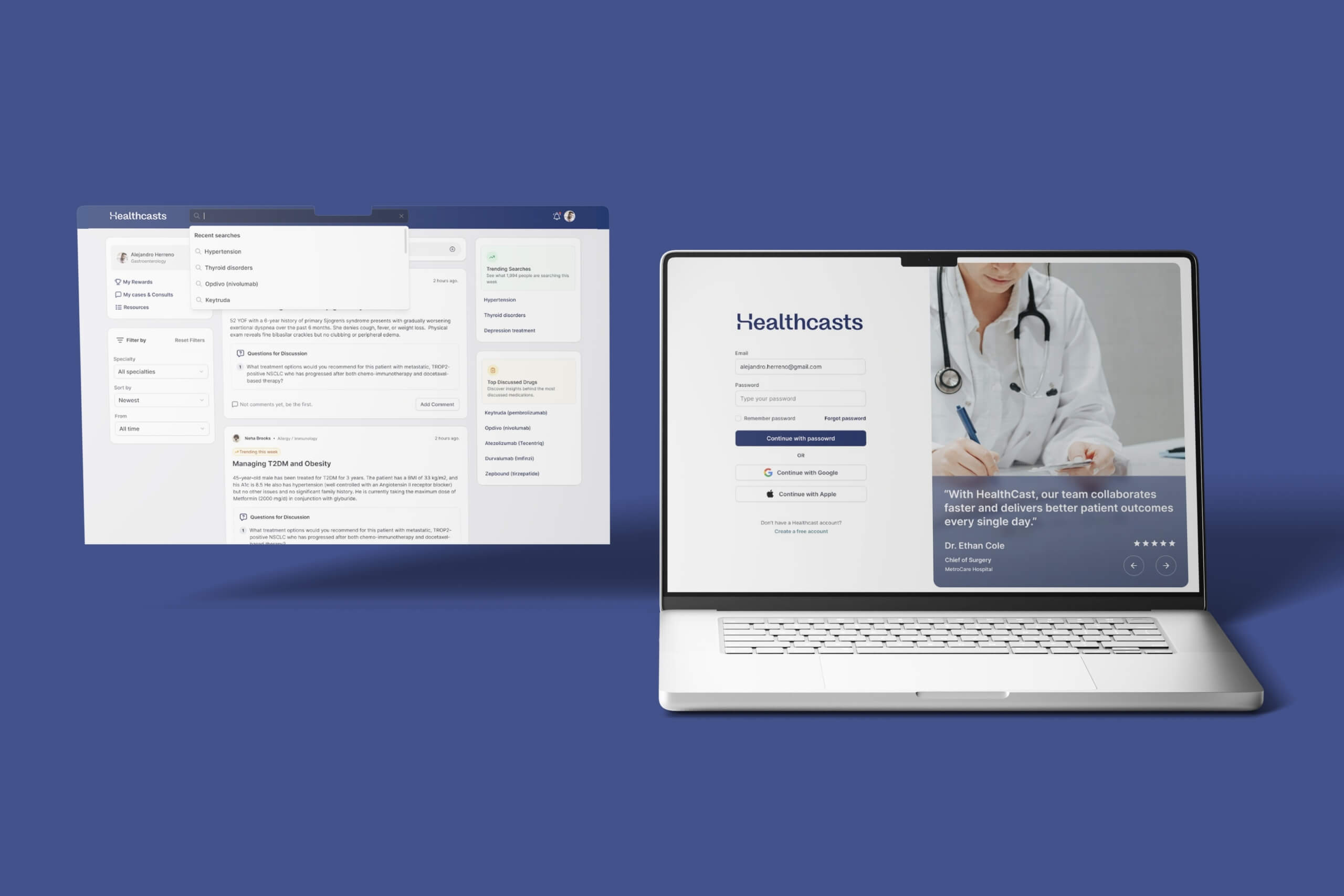 Healthcasts is a New York–based digital health company that connects verified physicians and healthcare professionals through a secure collaboration platform. Its mission is to improve patient outcomes by helping doctors share real-world cases, access clinical data, and collaborate on evidence-based decisions.